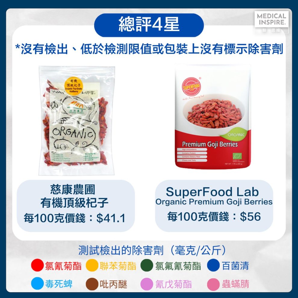 1. 慈康農圃 有機頂級杞子 每100克價錢:$41.1